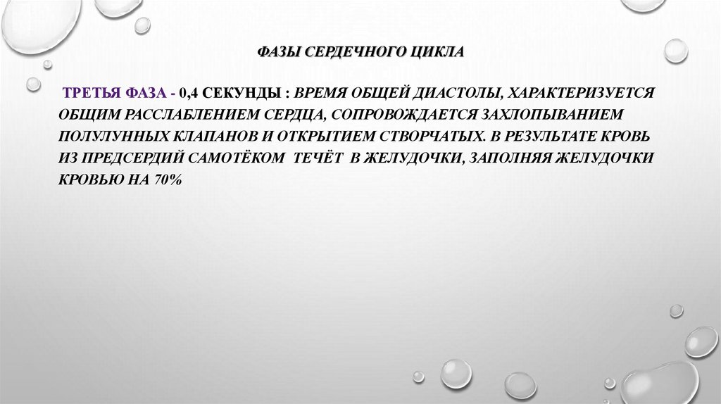 ФАЗЫ СЕРДЕЧНОГО ЦИКЛАТРЕТЬЯ ФАЗА - 0,4 СЕКУНДЫ : ВРЕМЯ ОБЩЕЙ ДИАСТОЛЫ, ХАРАКТЕРИЗУЕТСЯ