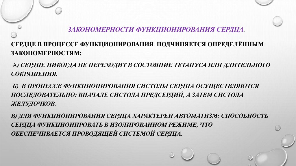 ЗАКОНОМЕРНОСТИ ФУНКЦИОНИРОВАНИЯ СЕРДЦА.СЕРДЦЕ В ПРОЦЕССЕ ФУНКЦИОНИРОВАНИЯ ПОДЧИНЯЕТСЯ ОПРЕДЕЛЁННЫМ