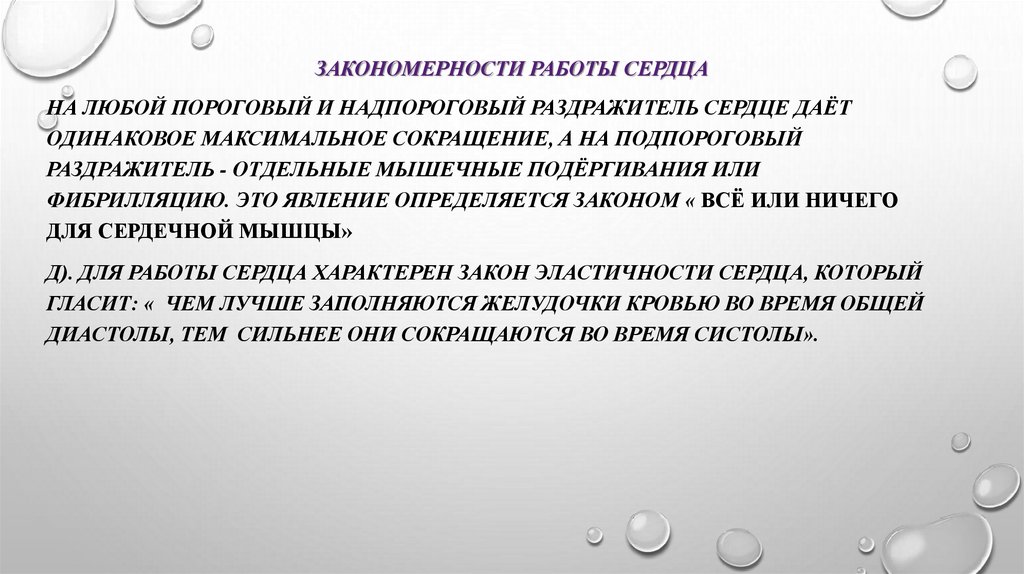 ЗАКОНОМЕРНОСТИ РАБОТЫ СЕРДЦАНА ЛЮБОЙ ПОРОГОВЫЙ И НАДПОРОГОВЫЙ РАЗДРАЖИТЕЛЬ СЕРДЦЕ ДАЁТ