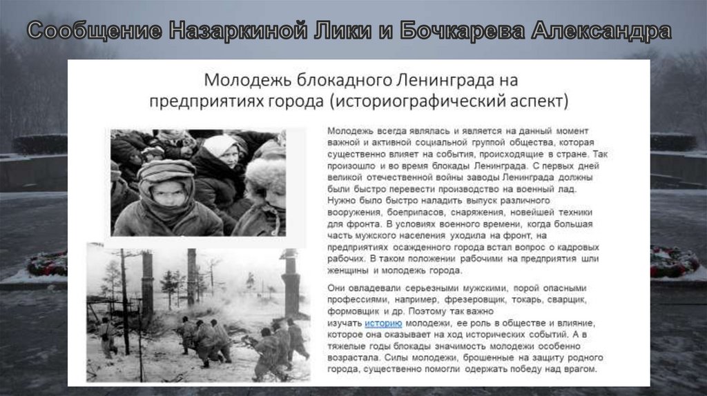 Молодежь блокадного Ленинграда
