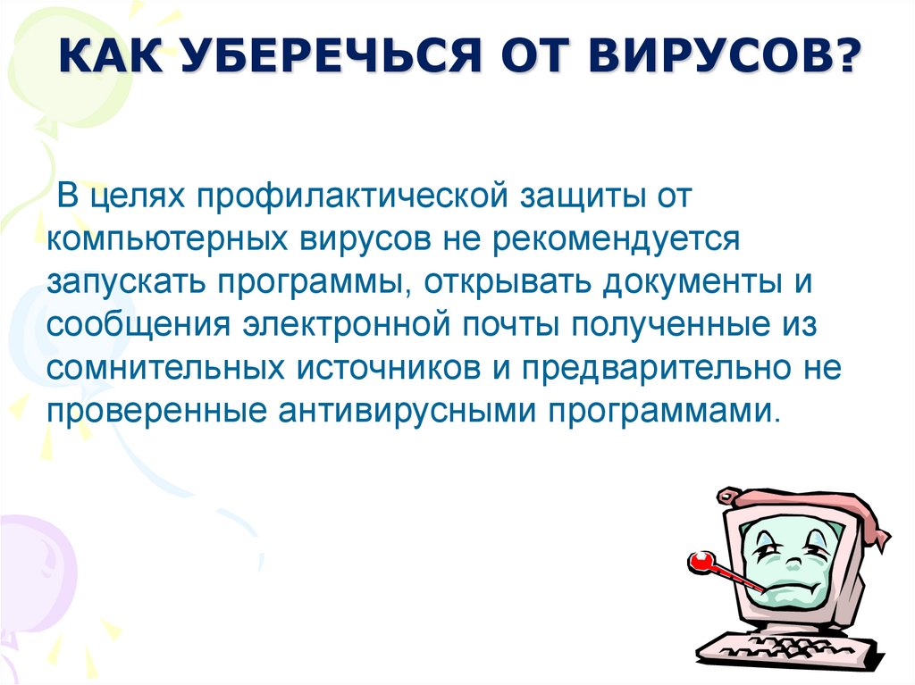 компьютерных вирусов не рекомендуется