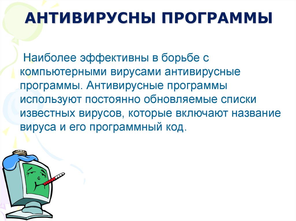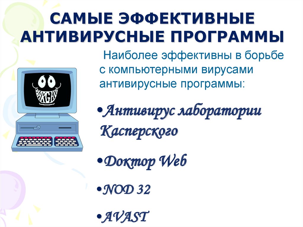 АНТИВИРУСНЫ ПРОГРАММЫНаиболее эффективны в борьбе с