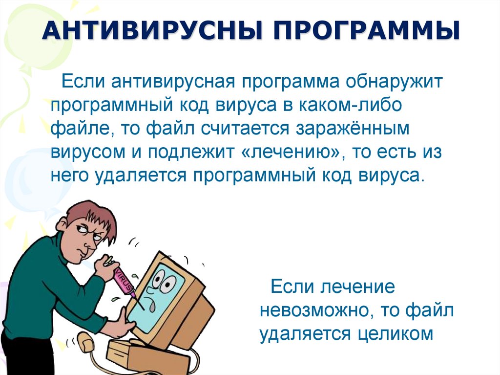 АНТИВИРУСНЫ ПРОГРАММЫЕсли антивирусная программа обнаружит
