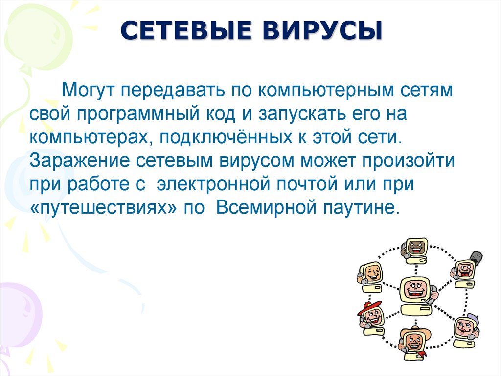 СЕТЕВЫЕ ВИРУСЫМогут передавать по компьютерным сетям