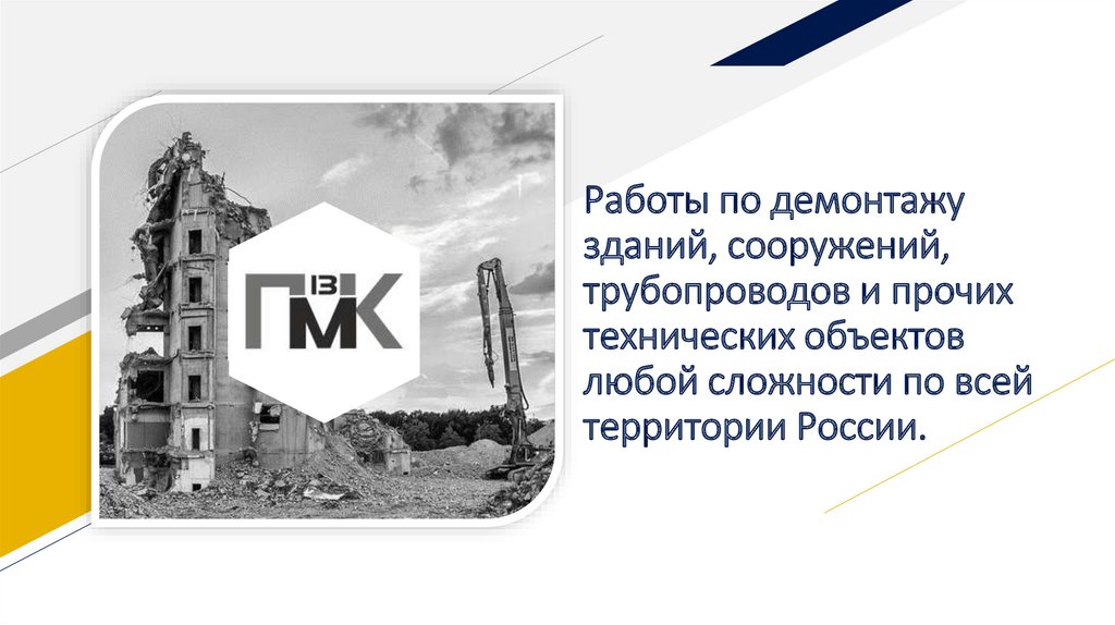 Работы по демонтажу зданий, сооружений, трубопроводов и прочих технических объектов любой сложности по всей территории России