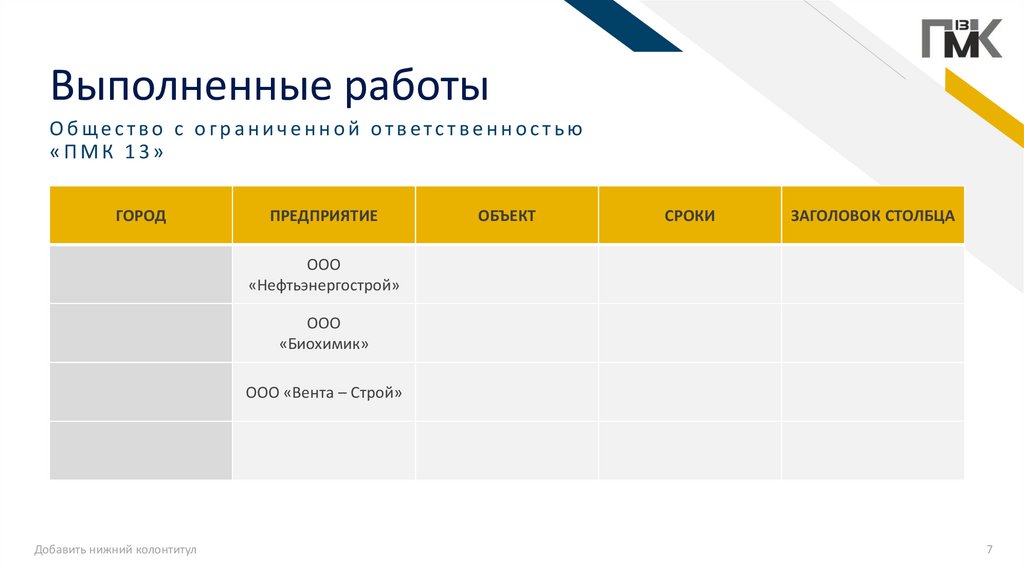 точности и профессионализма. Компания ООО «ПМК 13» занимается реализацией