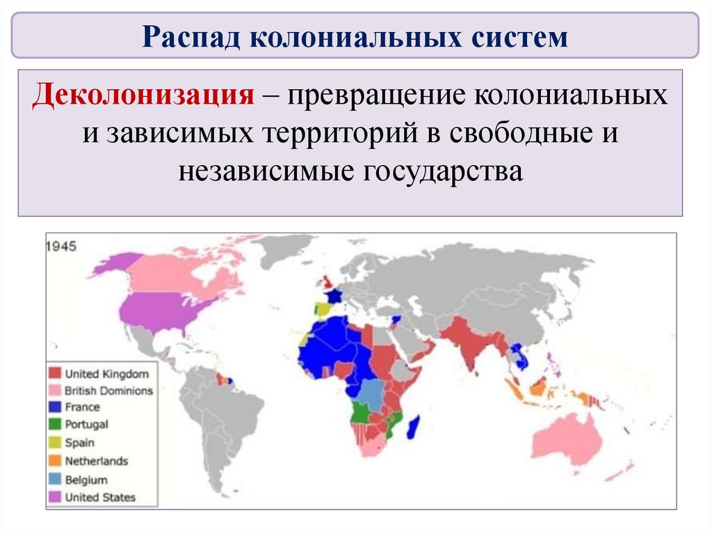 Распад колониальных системДеколонизация – превращение колониальных