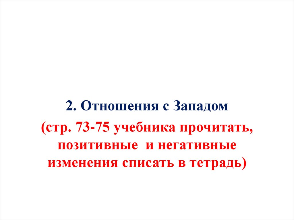 2. Отношения с Западом(стр. 73-75 учебника прочитать,