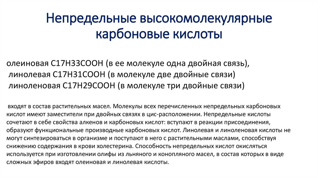 Непредельные высокомолекулярныекарбоновые кислоты
