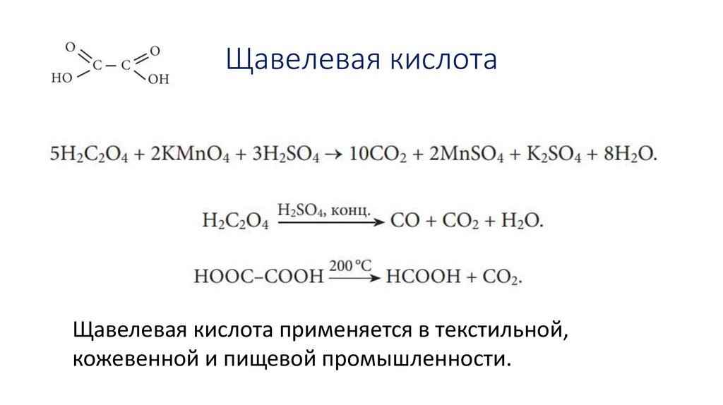 Щавелевая кислотаЩавелевая кислота применяется в текстильной,