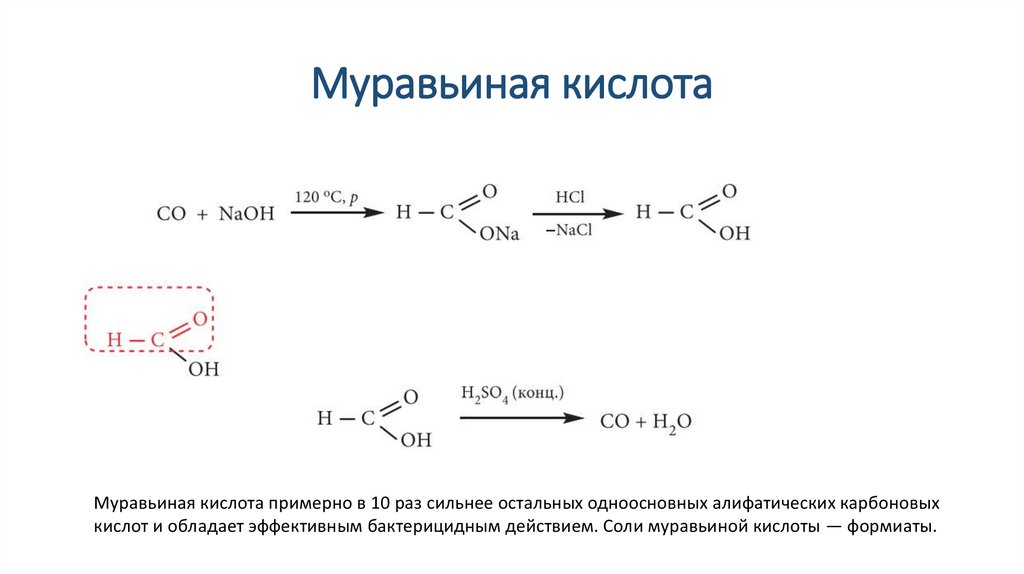 кислот и обладает эффективным бактерицидным действием. Соли муравьиной кислоты — формиаты.