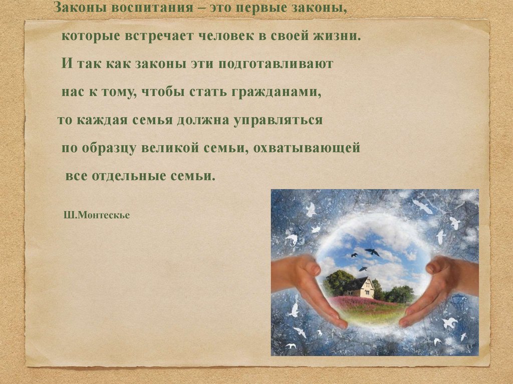 Законы воспитания – это первые законы,которые встречает человек в своей жизни.