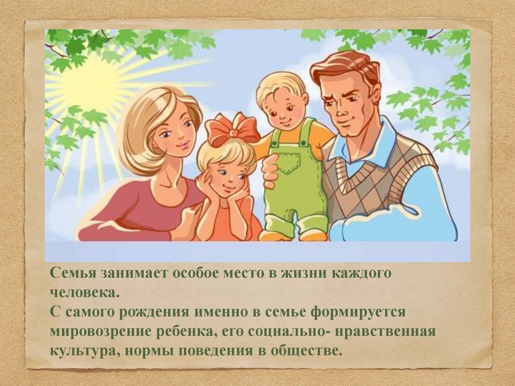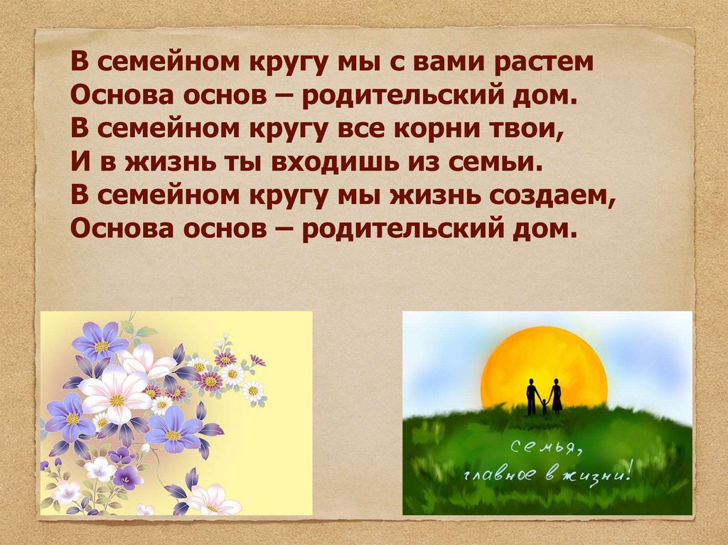 В семейном кругу мы с вами растемОснова основ – родительский дом.