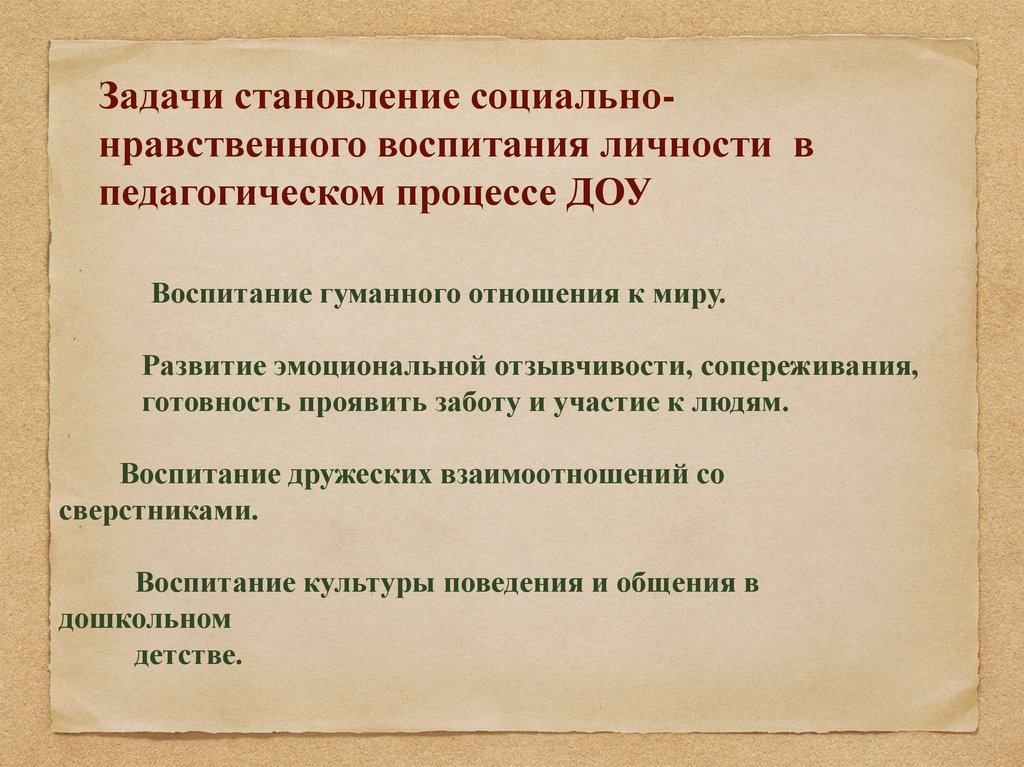Задачи становление социальнонравственного воспитания личности впедагогическом процессе ДОУ
