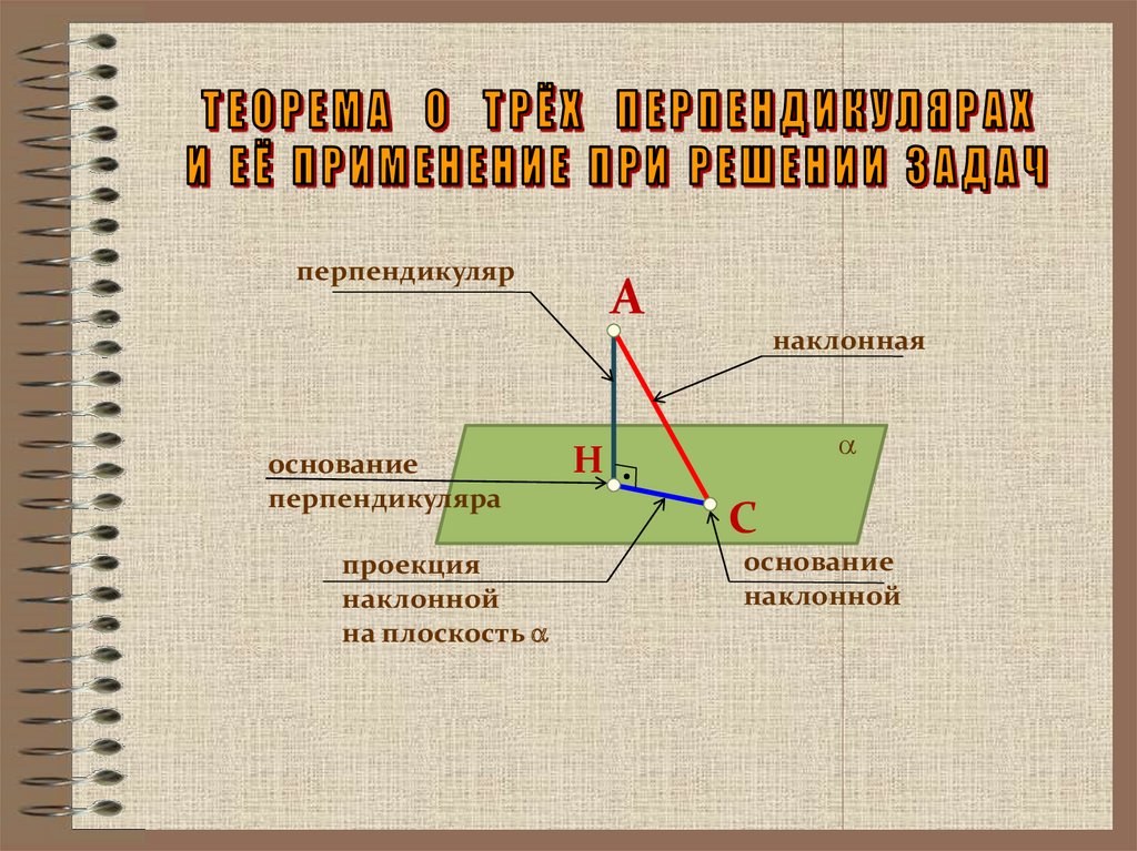 Прямая, проведенная в плоскости через основаниеперпендикулярно к ней, перпендикулярна и к
