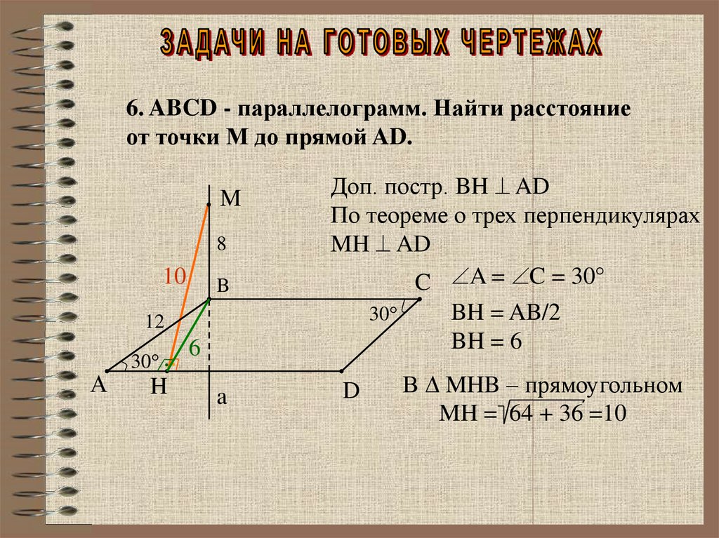 6. ABCD - параллелограмм. Найти расстояниеот точки М до прямой AD.