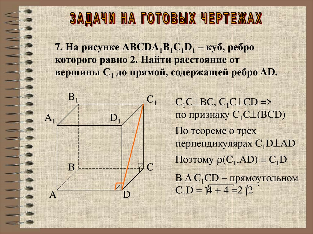 7. На рисунке АBCDA1B1C1D1 – куб, реброкоторого равно 2. Найти расстояние от