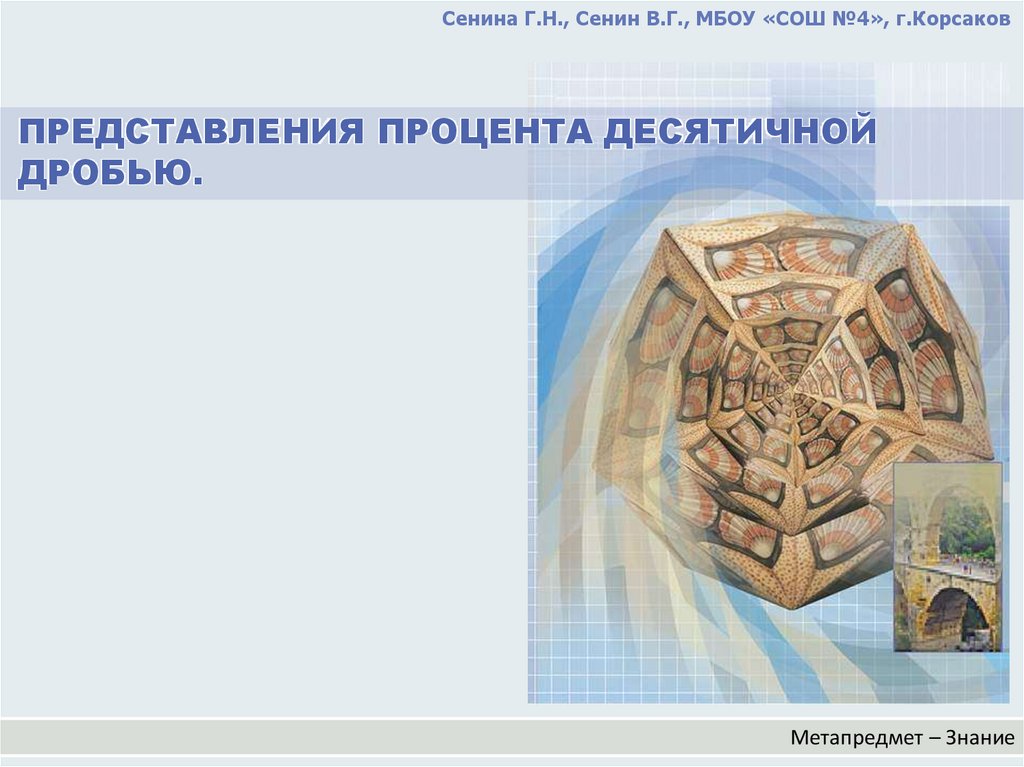 Сенина Г.Н., Сенин В.Г., МБОУ «СОШ №4», г.КорсаковПРЕДСТАВЛЕНИЯ ПРОЦЕНТА ДЕСЯТИЧНОЙ