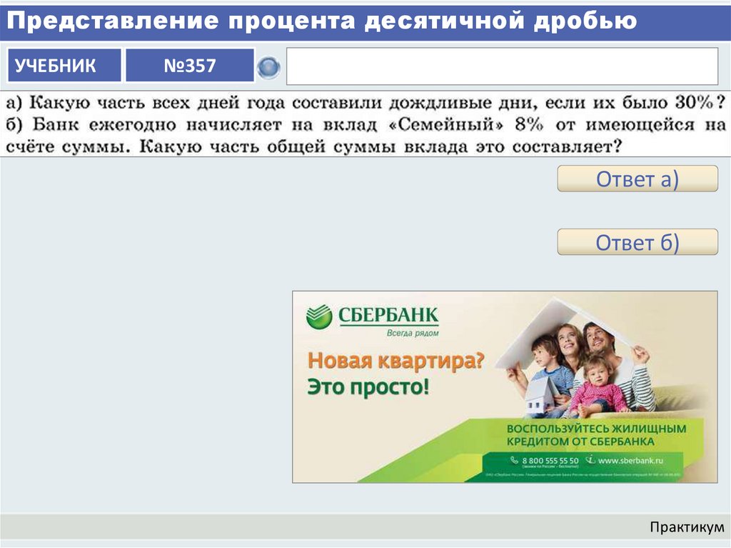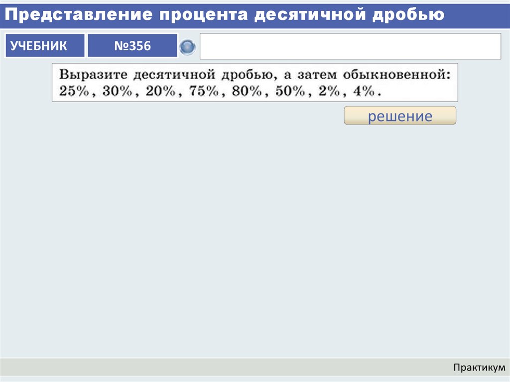 Представление процента десятичной дробьюУЧЕБНИК