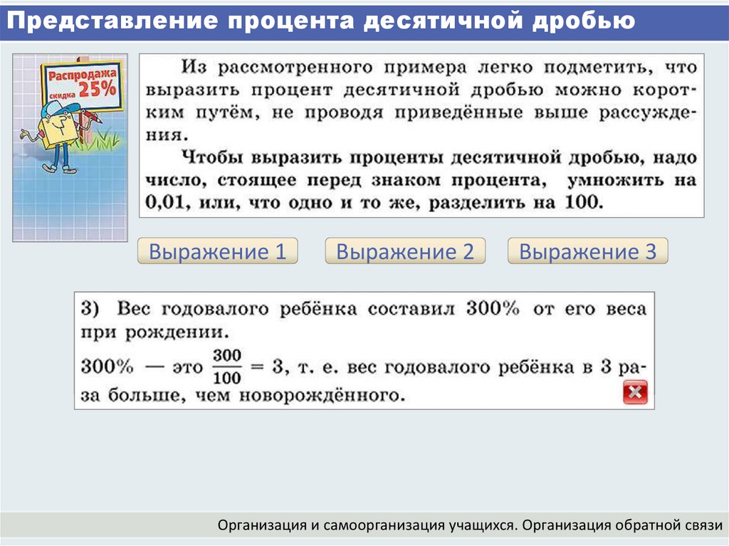 Представление процента десятичной дробьюВыражение 1