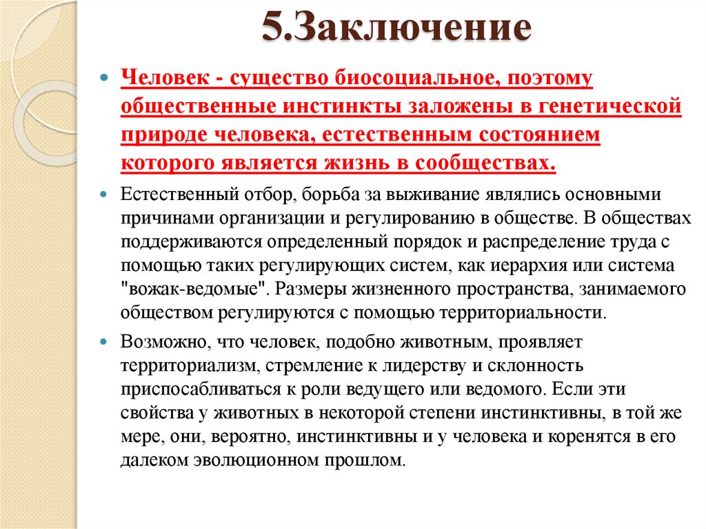 5.ЗаключениеЧеловек - существо биосоциальное, поэтому