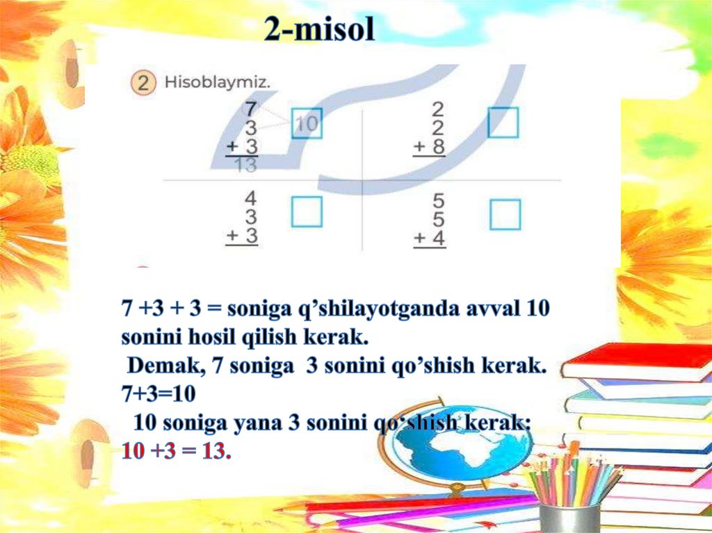 Sonlarni o'nlikdan o'tib qo'shish