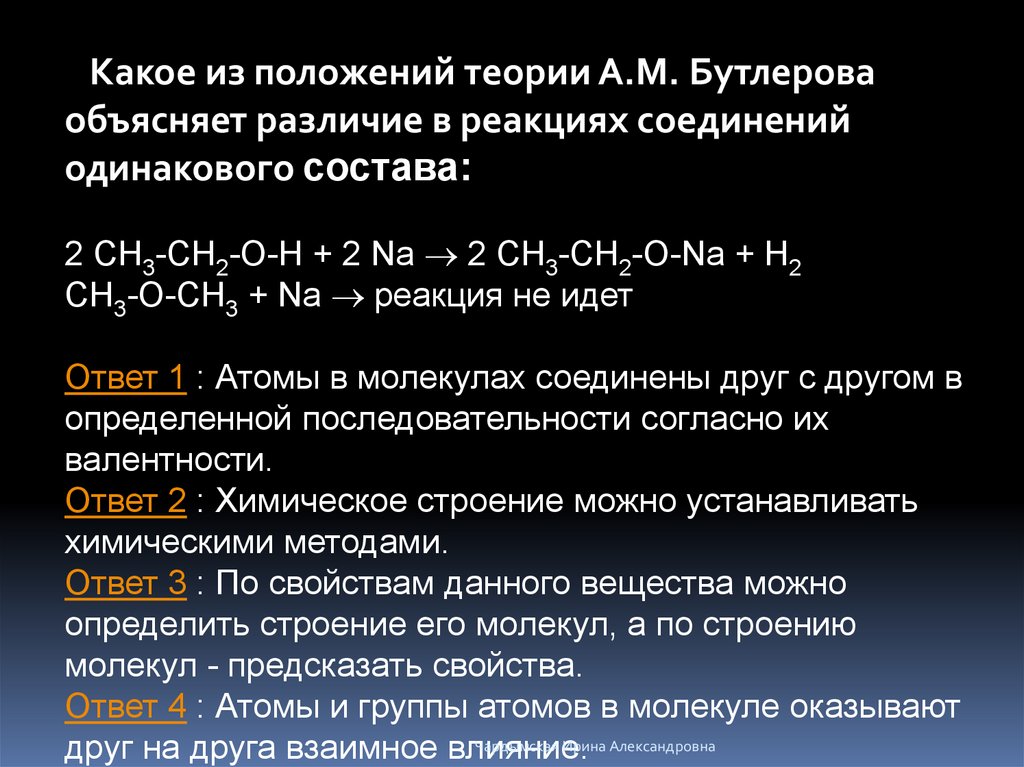 Какое из положений теории А.М. Бутлероваобъясняет различие в реакциях соединений