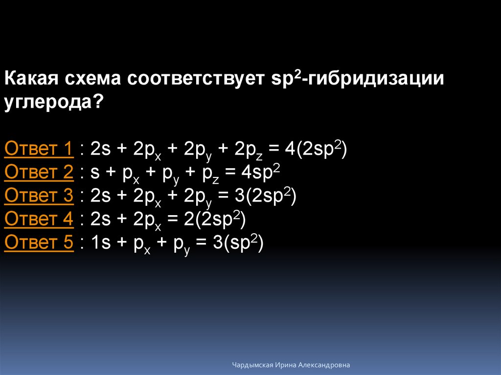 Какая схема соответствует sp2-гибридизацииуглерода?