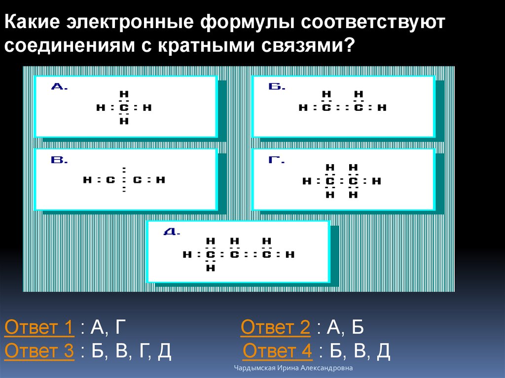 Какие электронные формулы соответствуют соединениям с кратными связями?Какие электронные формулы соответствуют