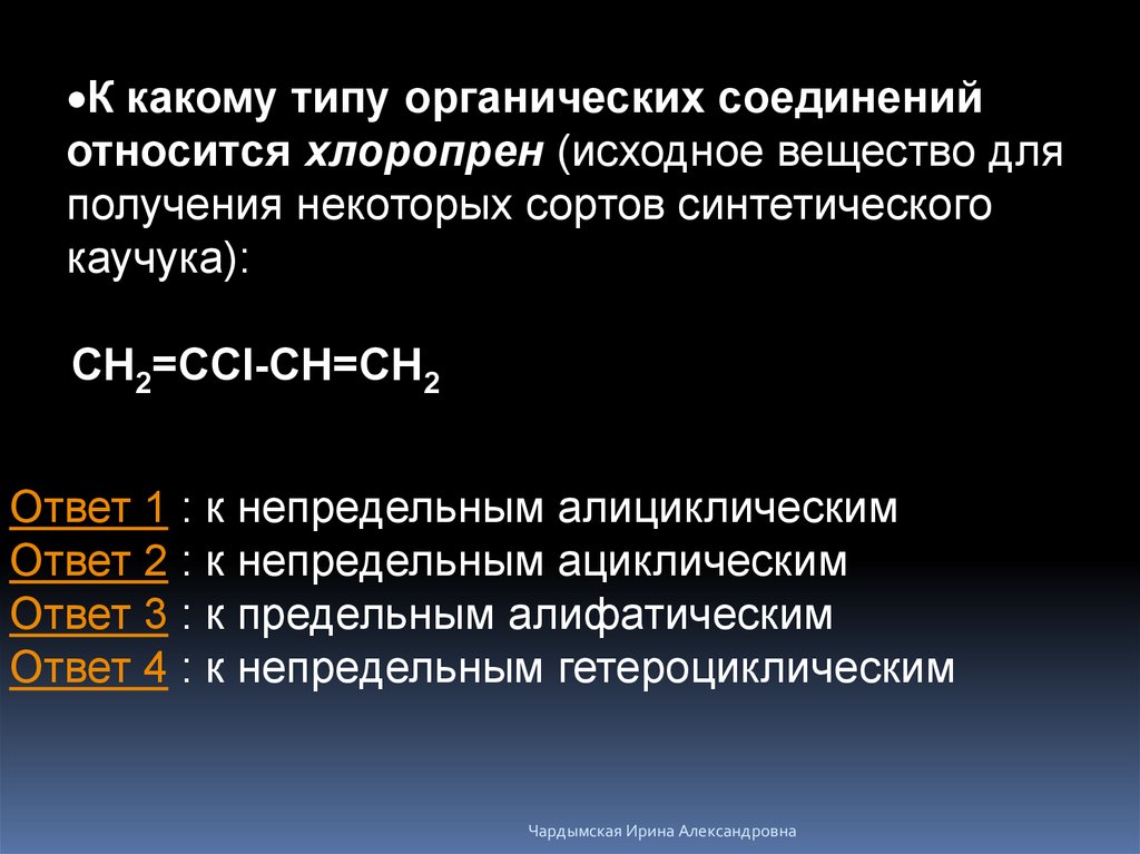 К какому типу органических соединенийотносится хлоропрен (исходное вещество для