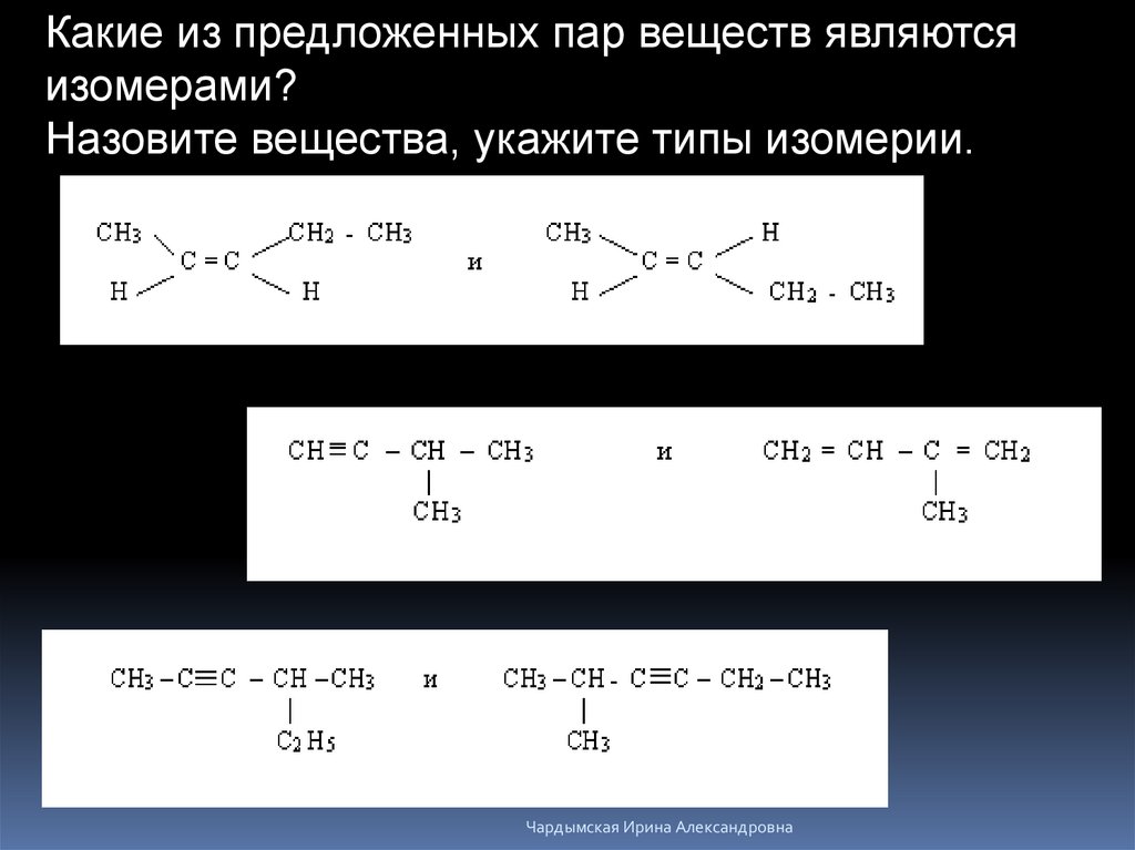 Назовите вещества, укажите типы изомерии.