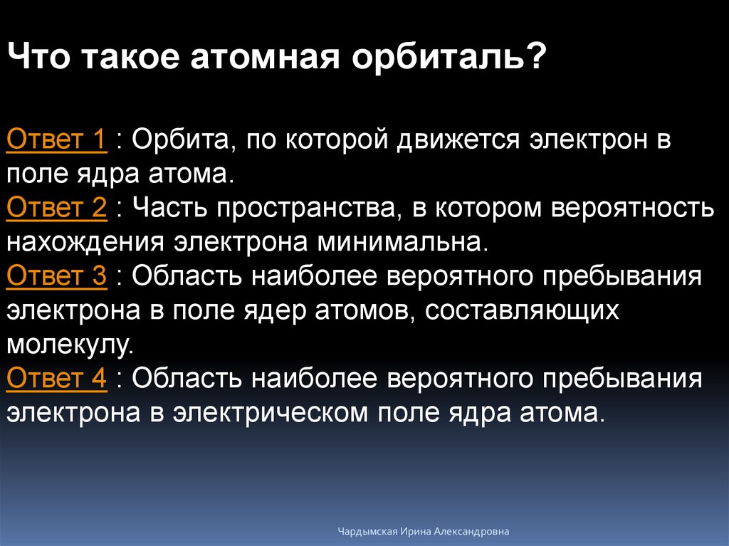 Что такое атомная орбиталь?Ответ 1 : Орбита, по которой движется электрон в