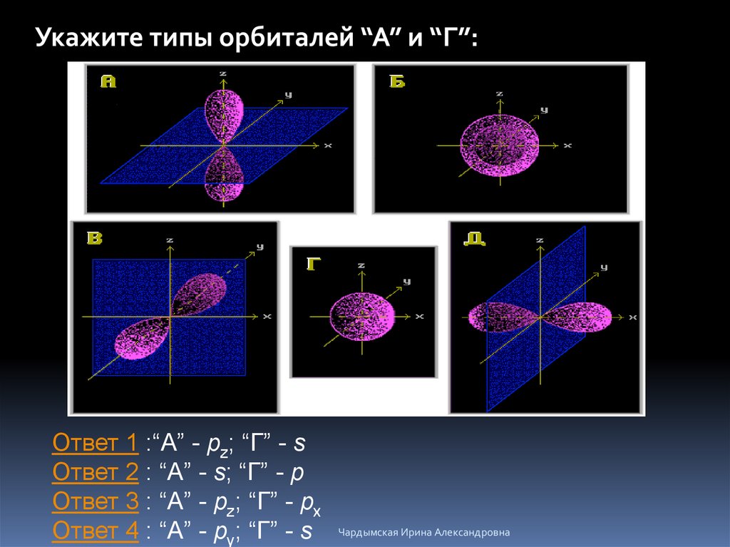 Укажите типы орбиталей “А” и “Г”:Ответ 1 :“А” - pz; “Г” - s