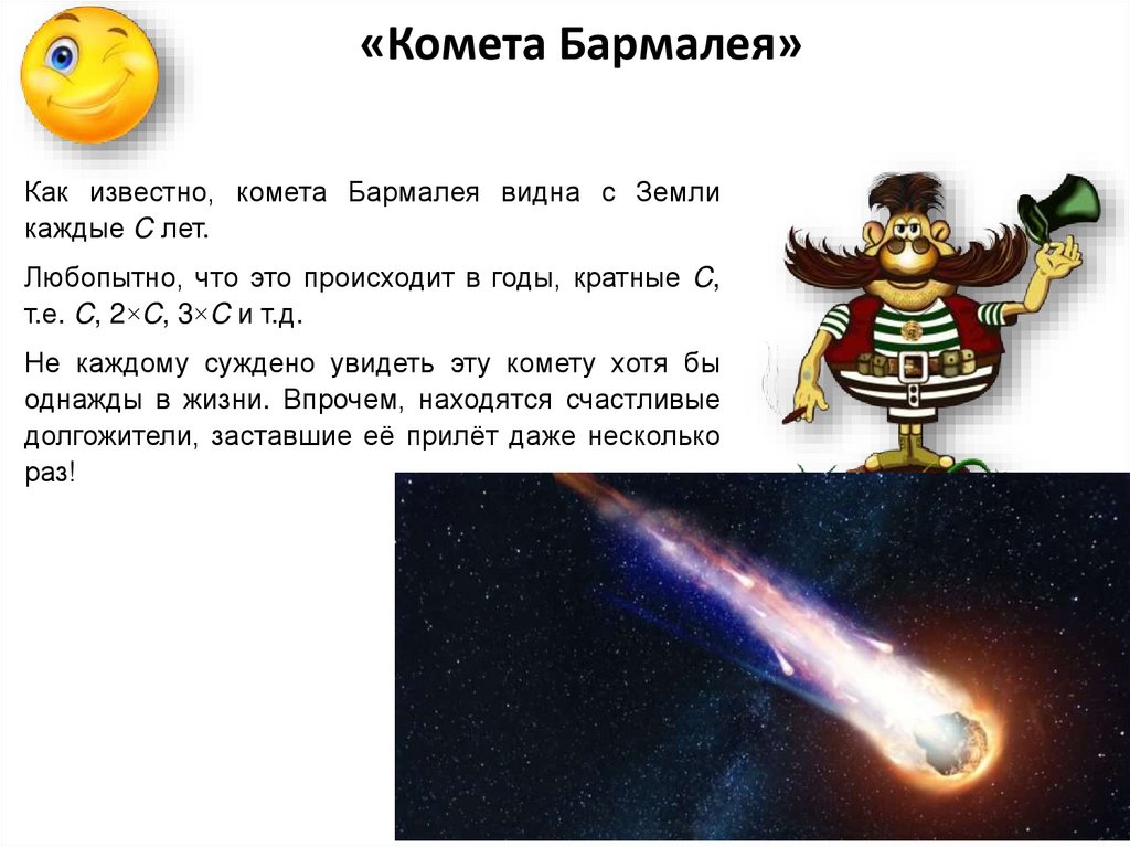«Комета Бармалея»Как известно, комета Бармалея видна с Земли