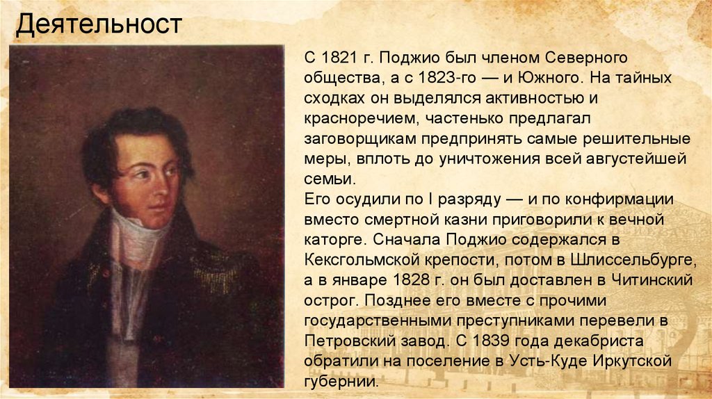 каторге. Сначала Поджио содержался в