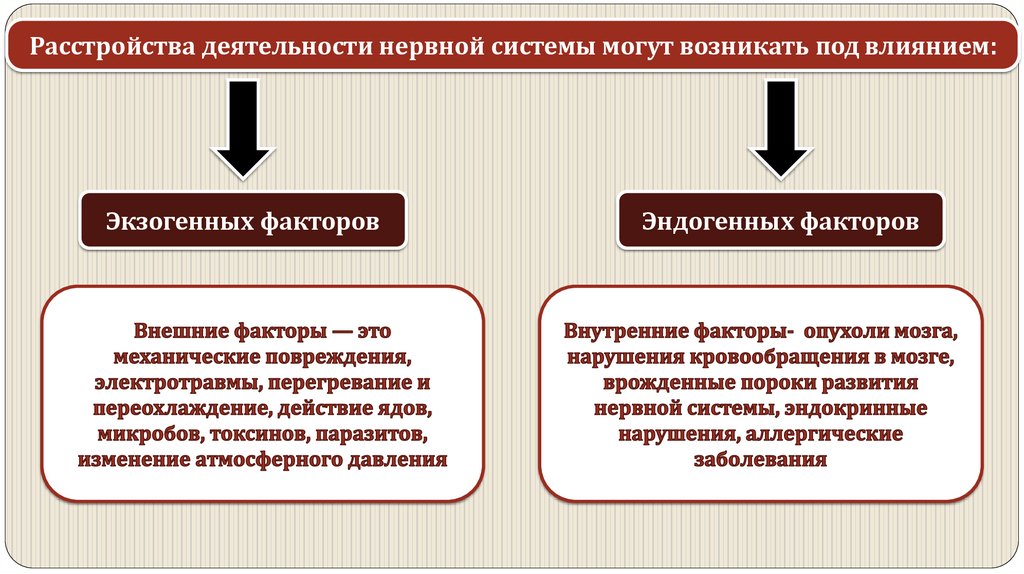 Расстройства деятельности нервной системы могут возникать под влиянием:Экзогенных факторов