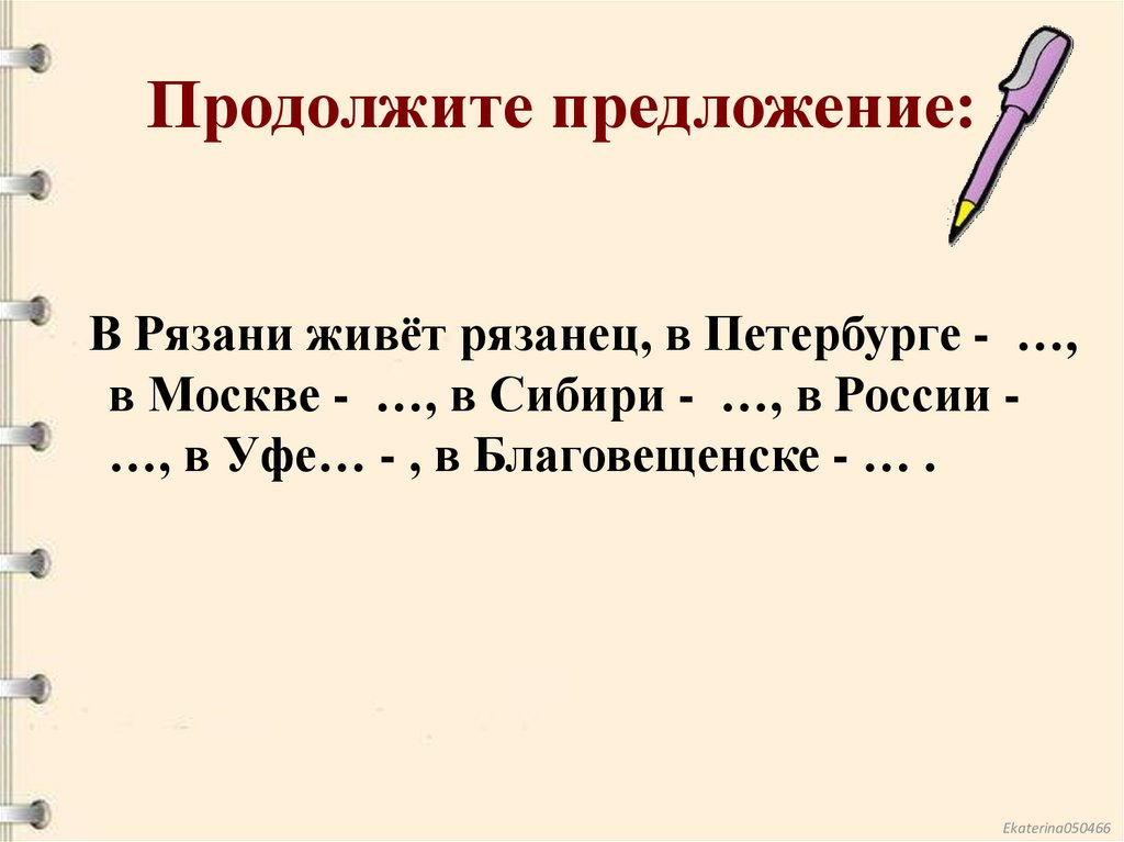 Продолжите предложение:В Рязани живёт рязанец, в Петербурге - …,