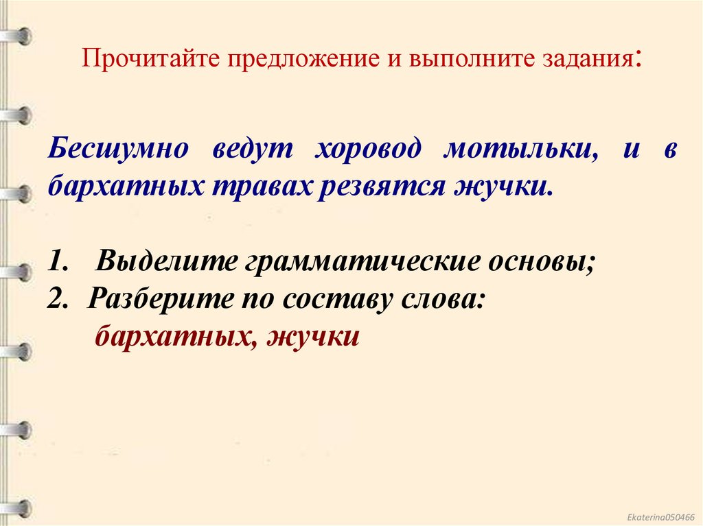 Прочитайте предложение и выполните задания:Бесшумно ведут хоровод мотыльки, и в