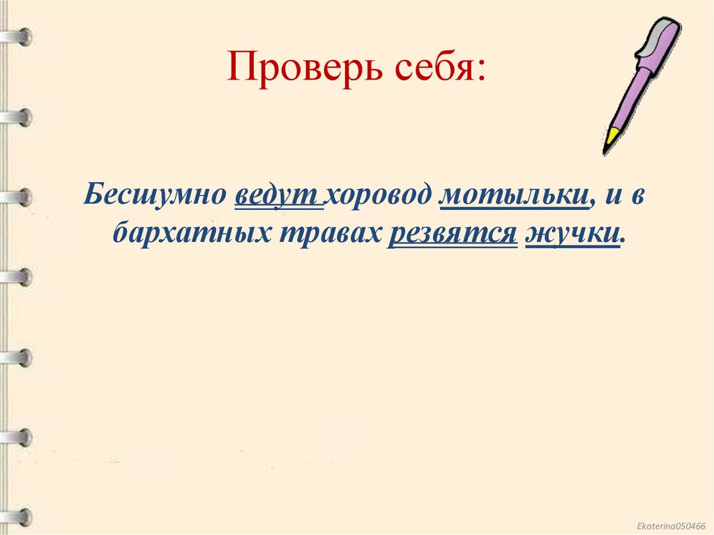 Проверь себя:Бесшумно ведут хоровод мотыльки, и в