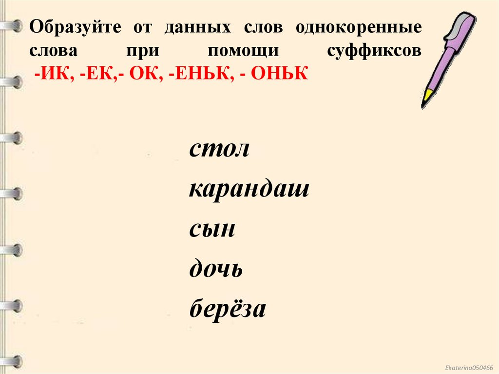 Образуйте от данных слов однокоренныеслова