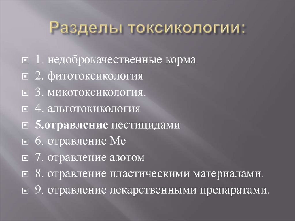 1. Разделы токсикологии.2. Понятие отравление. Классификация.