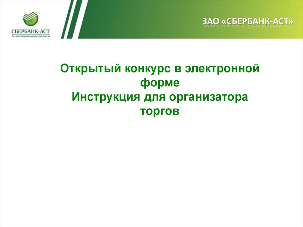Открытый конкурс в электронной форме. Инструкция для организатора торгов. ЗАО «Сбербанк-аст»