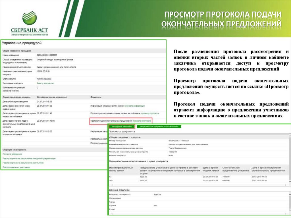 ПРОСМОТР ПРОТОКОЛА ПОДАЧИОКОНЧАТЕЛЬНЫХ ПРЕДЛОЖЕНИЙ