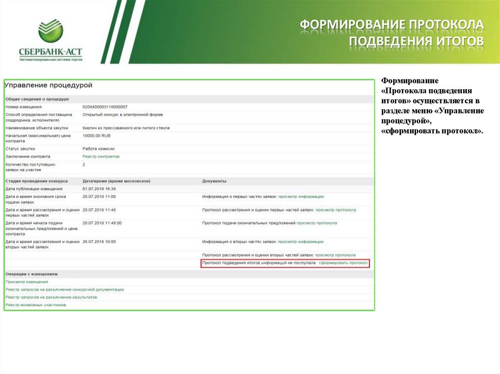 11. Формирование протокола рассмотрения и оценки вторых частей заявок