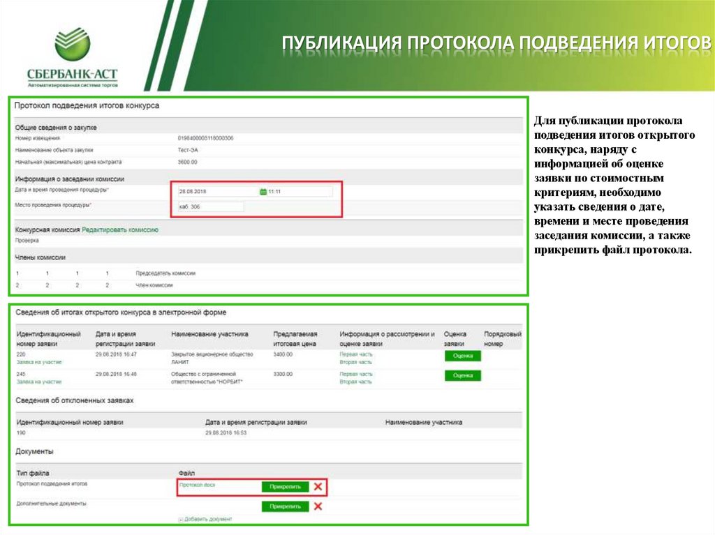 13. Публикация протокола рассмотрения и оценки вторых частей заявок