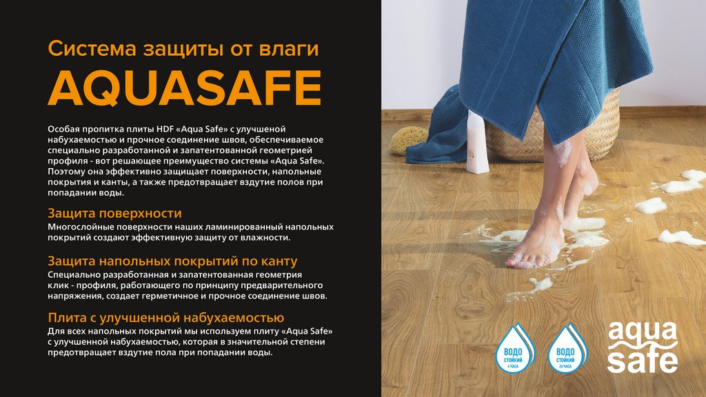 Для всех напольных покрытий мы используем плиту «Aqua Safe»