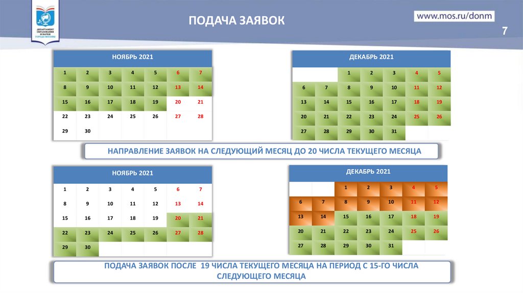 НАПРАВЛЕНИЕ ЗАЯВОК НА СЛЕДУЮЩИЙ МЕСЯЦ ДО 20 ЧИСЛА ТЕКУЩЕГО МЕСЯЦА