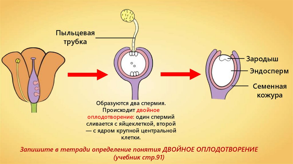 Запишите в тетради определение понятия ДВОЙНОЕ ОПЛОДОТВОРЕНИЕ