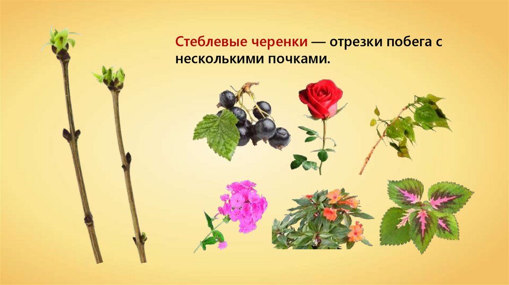 Стеблевые черенки — отрезки побега снесколькими почками.