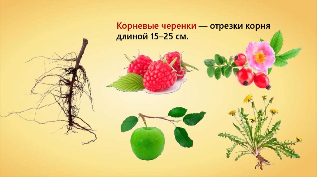 Корневые черенки — отрезки корнядлиной 15–25 см.